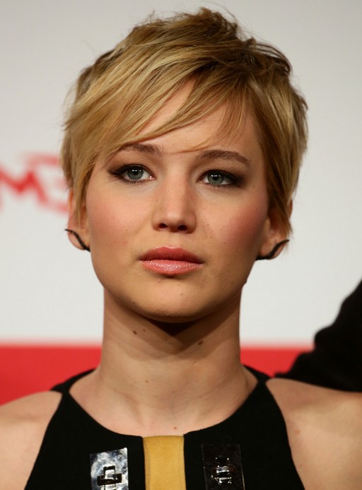 Jennifer Lawrence Layered Short Haircut with EMO Ban…